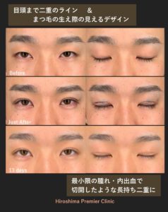 腫れにくく、安定した二重が保たれています。